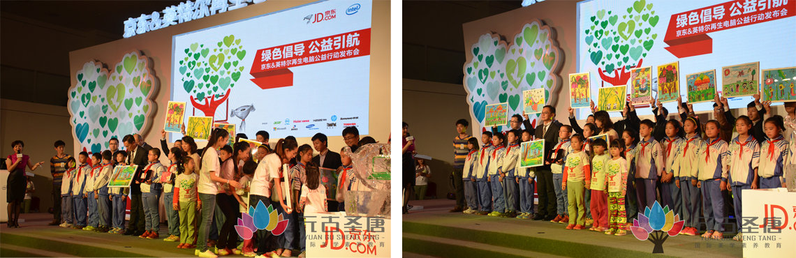 2013年元古圣唐受邀参加京东与英特尔联合举办的“再生电脑公益行动”,为打工学校学生捐赠作品。